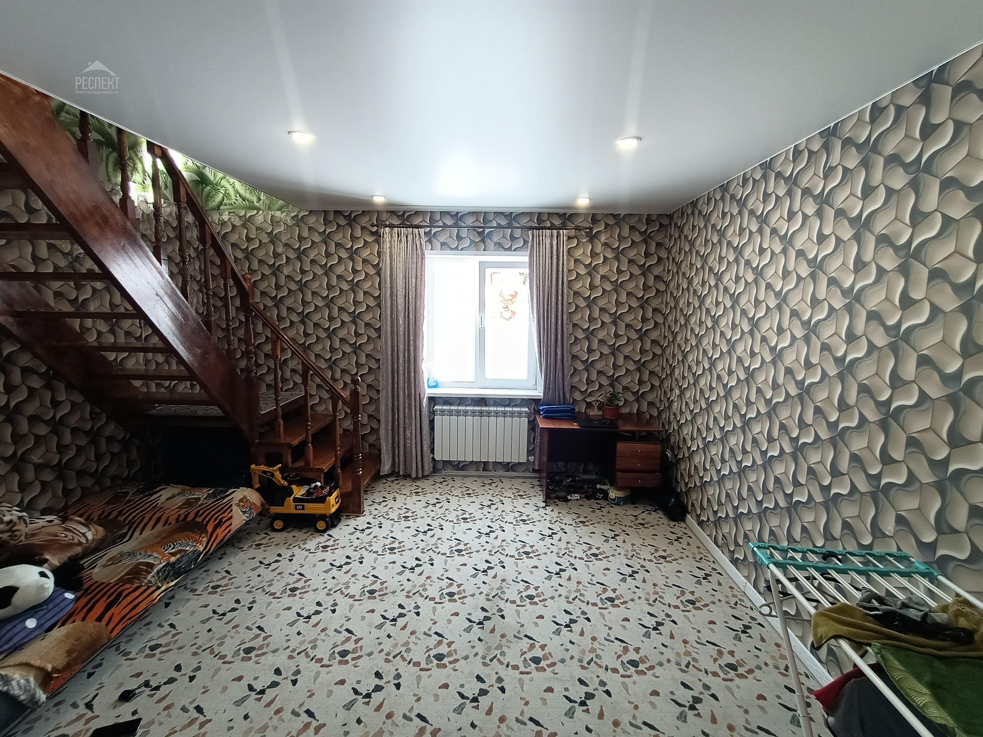 1 этаж: удобная прихожая, санузел, бойлерная, изолированная комната (гостевая/кабинет/спальня), просторная кухня-гостиная и комната с лестницей на второй этаж.