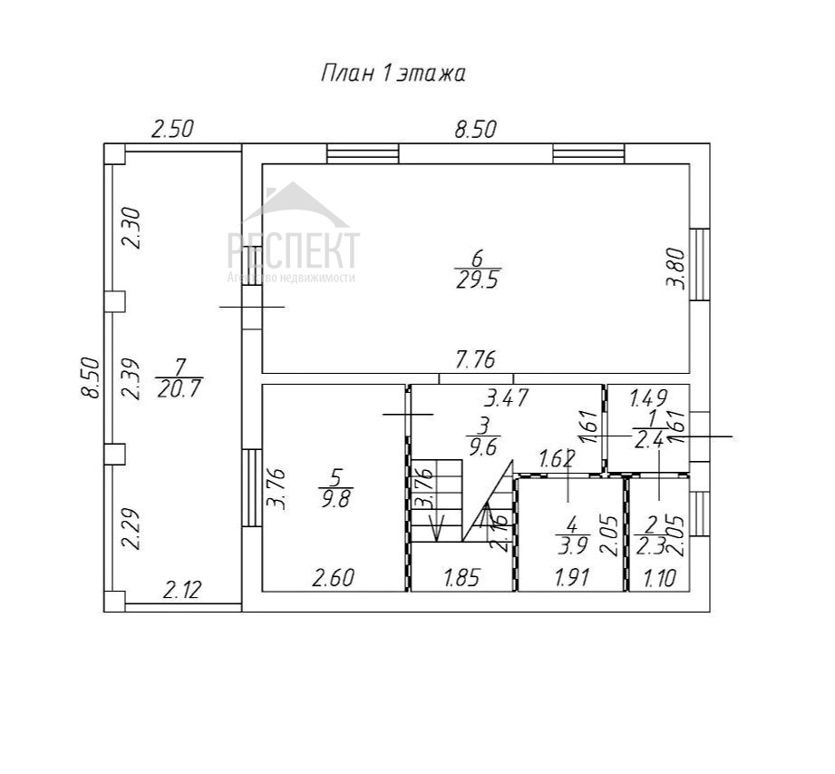 - 1 этаж: прихожая, бойлерная/котельная, санузел, просторная кухня-гостиная, изолированная комната (спальня/кабинет), веранда.